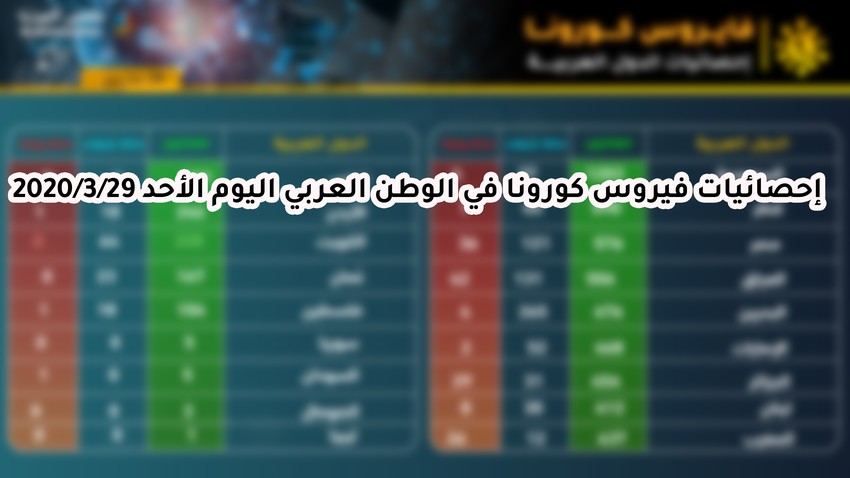 إحصائيات كورونا في الوطن العربي 2020/3/29